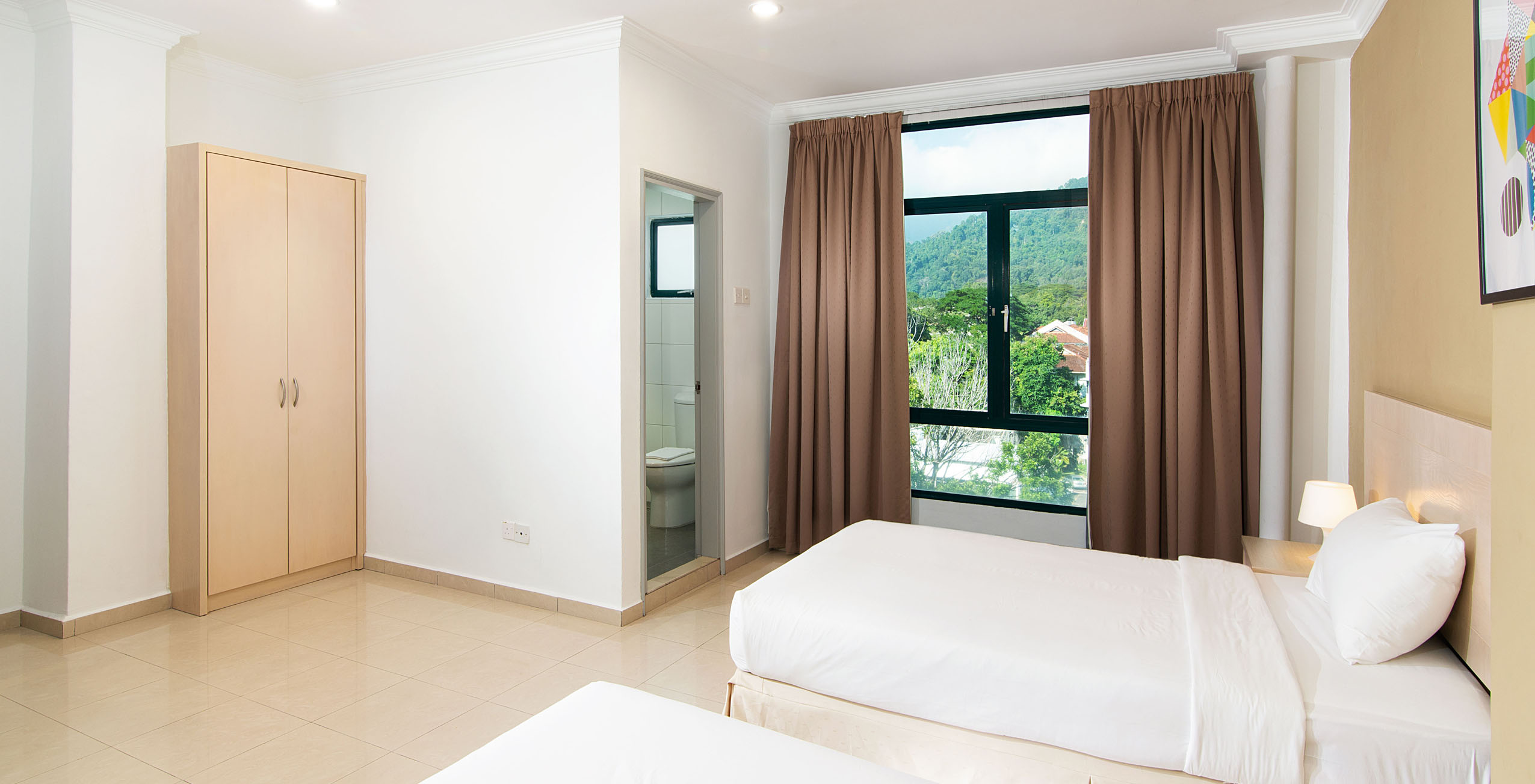 - Kamar tidur kedua dilengkapi dengan 1 tempat tidur Queen atau 2 tempat tidur Single